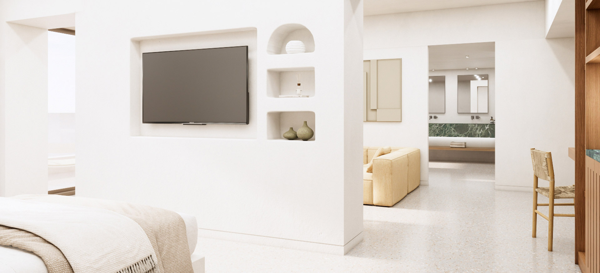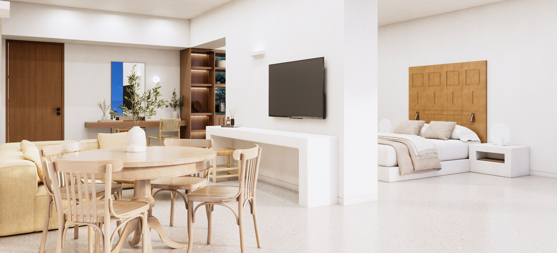 Όπου το φως, ο χώρος και η ιδιωτικότητα συναντιούνται σε τέλεια ισορροπία. Με τη δική της ηλιόλουστη βεράντα και ιδιωτική πισίνα, αυτή η signature σουίτα προσφέρει έναν πιο αργό ρυθμό ζωής — διακριτικά πολυτελής, όμορφα ανοιχτή και σχεδιασμένη για να αφήνει το νησί να εισχωρήσει.